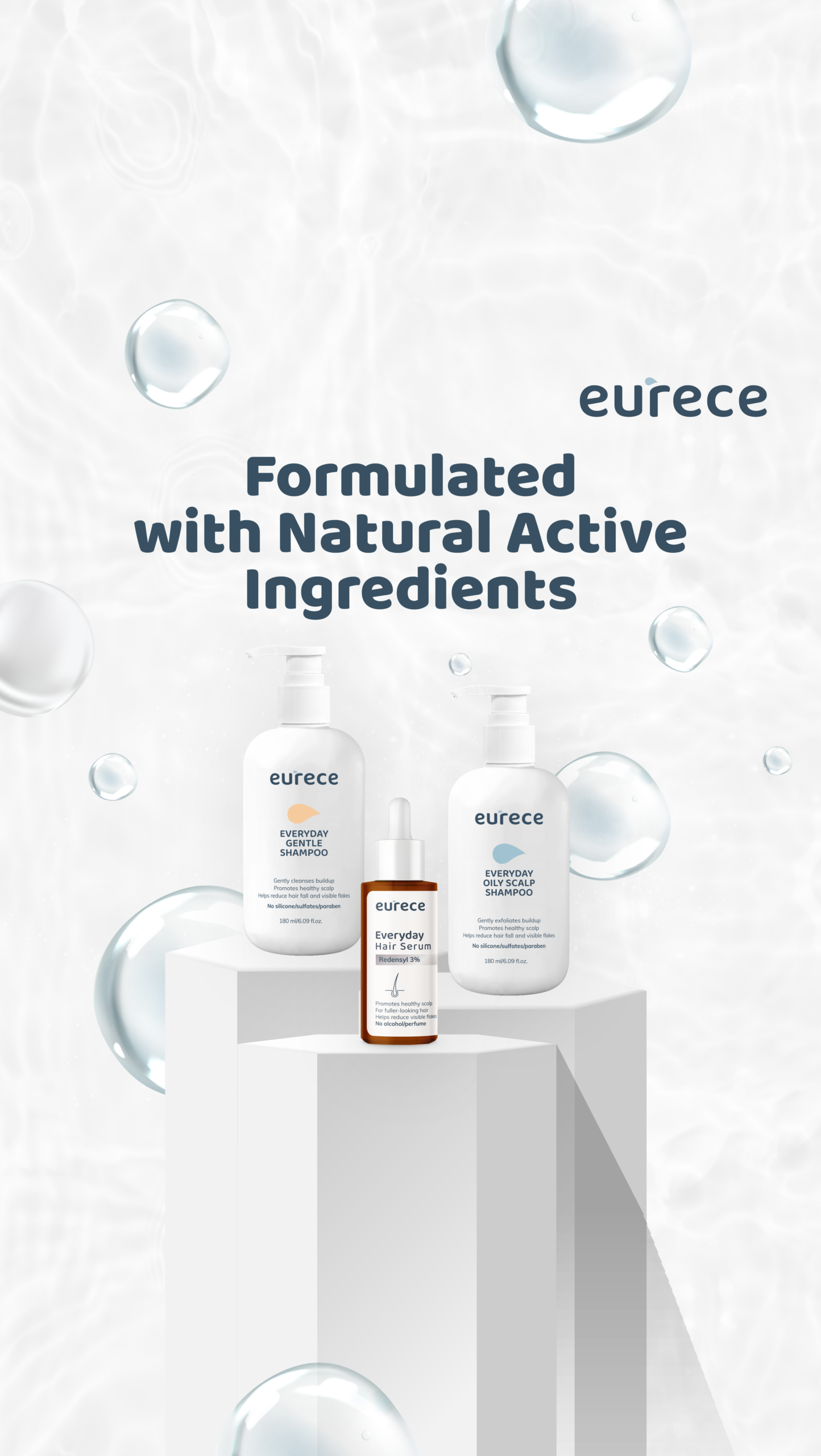 Eurece Everyday Oily Scalp Shampoo can be used daily to reduce both oiliness and dandruff on the scalp.